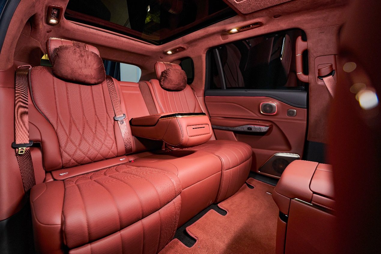 昊铂 HL 五座版直击家庭出行的核心痛点,将二排座椅打造成 “移动头等舱”。两张大尺寸独立座椅标配按摩、通风、加热功能,靠背角度可实现超 45° 电调,配合多维度舒享调节,即便长途跋涉也能让乘员随时享受 “移动按摩房” 般的放松体验。座椅材质延续六座版的奢华配置,表层采用柔软亲肤的超柔 Nappa 真皮,复合层搭载低温不变硬、久坐不变形的零感慢回弹棉,中央扶手区域不仅配备无线充电功能,更采用超柔软包工艺,从触觉支撑到功能配置,全方位诠释 “同级最豪华二排” 的定义。