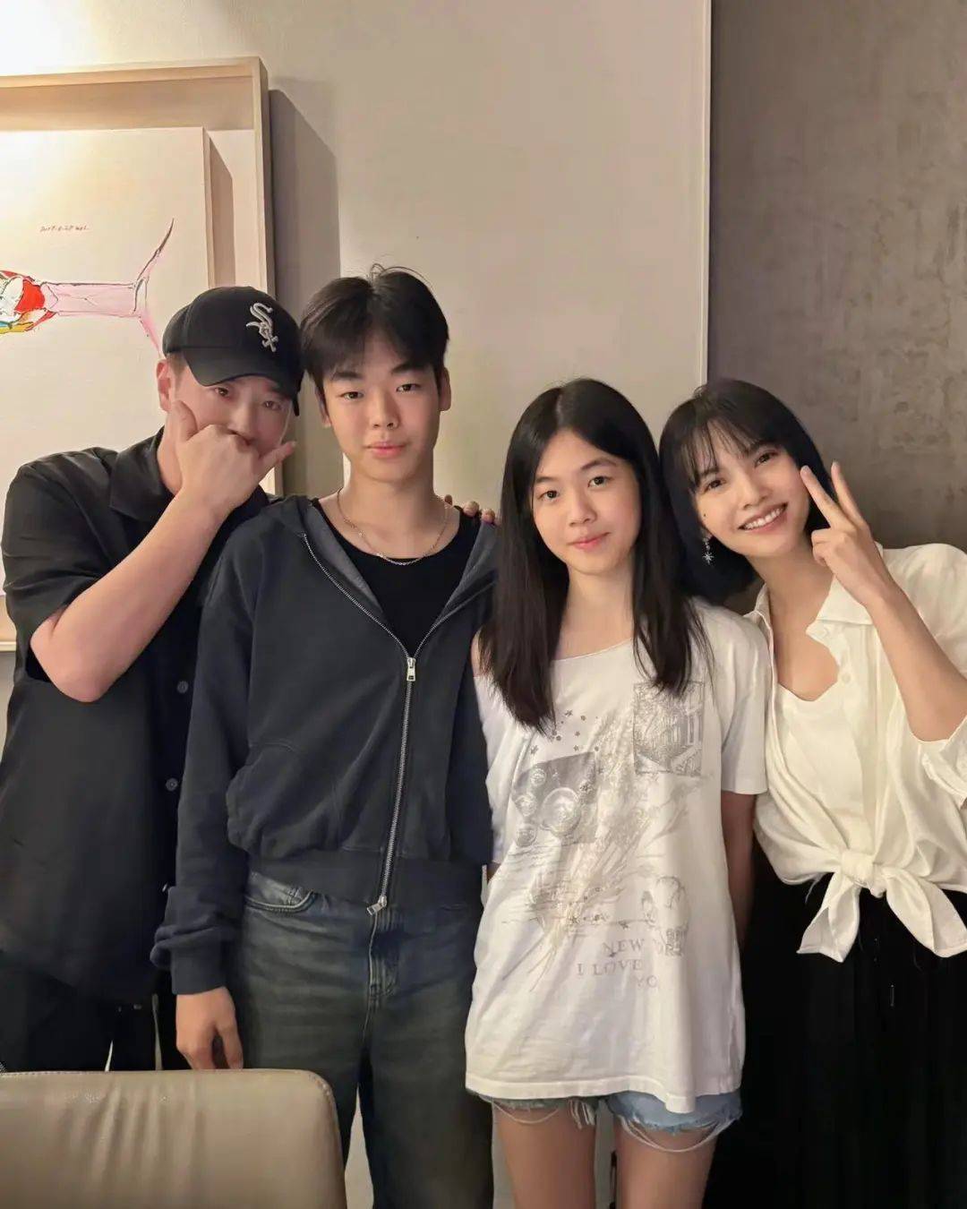 近日,杨丞琳在社交平台晒出与好友聚餐的合照,其中潘玮柏的惊喜现身瞬间掀起一波"回忆杀"。照片中,41岁的杨丞琳一头利落短发,白衬衫搭配星星耳环,笑容甜美依旧;而44岁的潘玮柏戴着棒球帽,比着招牌剪刀手,脸微微泛红,似乎刚小酌几杯。两人一前一后,一个清爽俏皮,一个搞怪耍帅,默契程度丝毫不减当年,让不少网友直呼:"我的青春DNA动了!"