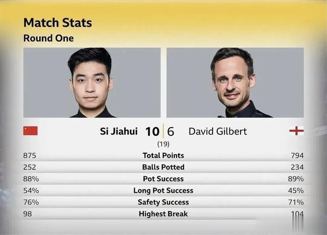 今晨的这场比赛,斯佳辉总共打出五杆50+进攻,吉尔伯特打出两杆破百和三杆50+,总体来讲,斯佳辉发挥还算不错,但对手吉尔伯特并不这样认为!