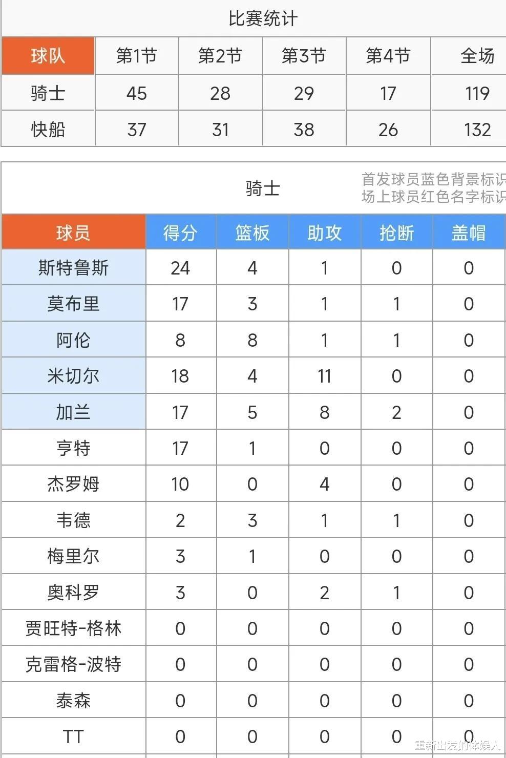 第四节比赛,双方进入白热化阶段。骑士队依旧顽强抵抗,米切尔和博格丹诺维奇的三分球屡有斩获,博格丹诺维奇更是三分球4中4,一度将分差缩小。但是,快船队的进攻更加稳定,哈登的组织和伦纳德的单打得分,让骑士队难以招架。祖巴茨在内线统治力十足,不断抢下篮板并得分,他在内线的统治力帮助快船队牢牢掌控着比赛。最终,快船队以132:119战胜骑士队,取得了四连胜。