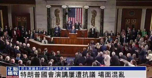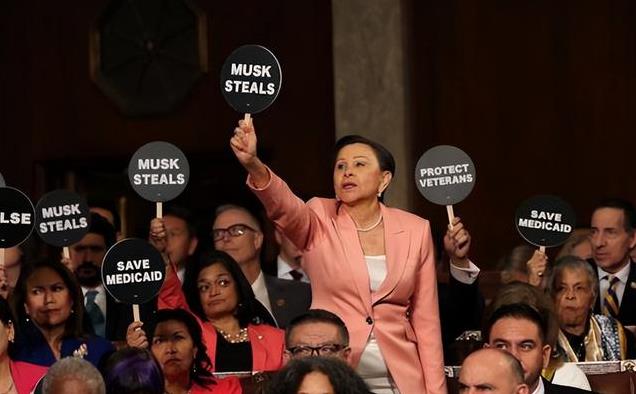 说实话,特朗普如今重新荣登总统宝座,如此拉踩实属有些不道德,因此民主党中有议员忍不了,选择举牌抗议。