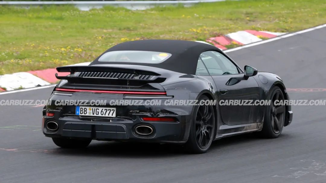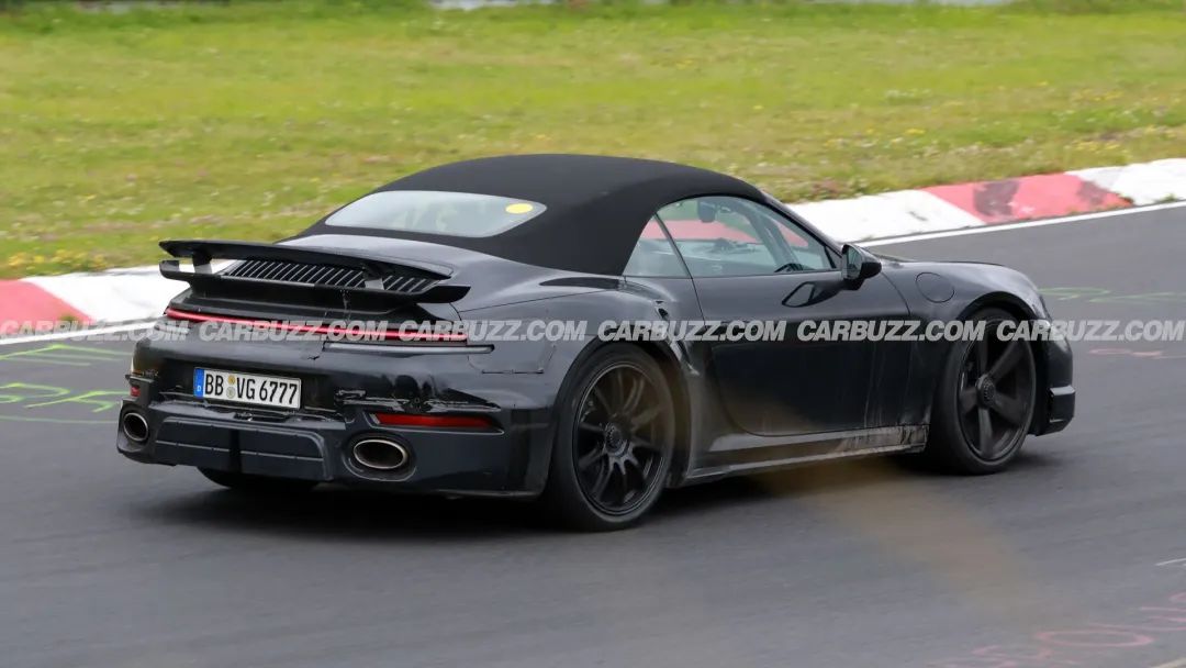 这款改款敞篷车被发现时带有明显的伪装,它效仿了911 GTS,配备了主动式空气尾翼和突出的传感器舱。这辆原型车所穿的伪装表明,它可能配备了更具攻击性的前分流器。