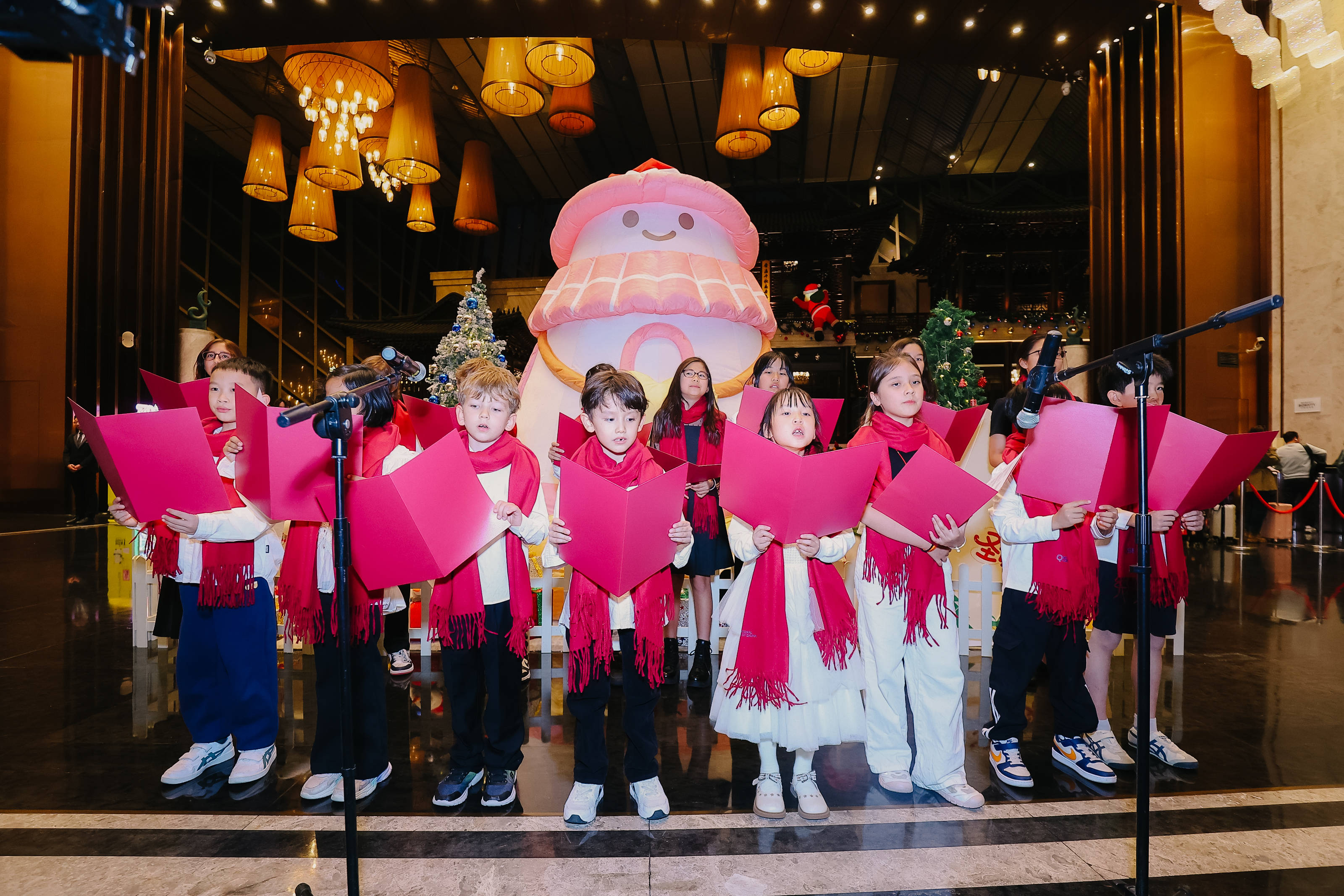 同时邀请现场的嘉宾一起倒计时,点亮代表着欢乐与希望的灯塔IP与圣诞树。在珠海科爱赛国际学校唱诗班孩子们的悠扬颂歌中,圣诞季正式揭开序幕。圣诞老人带着神秘礼物精彩亮相,现场更有圣诞热红酒派送,传递圣诞美好祝愿。