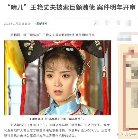 信息来源:新浪网 2019-01-31 “晴儿”王艳丈夫被索巨额赌债 案件明年开审