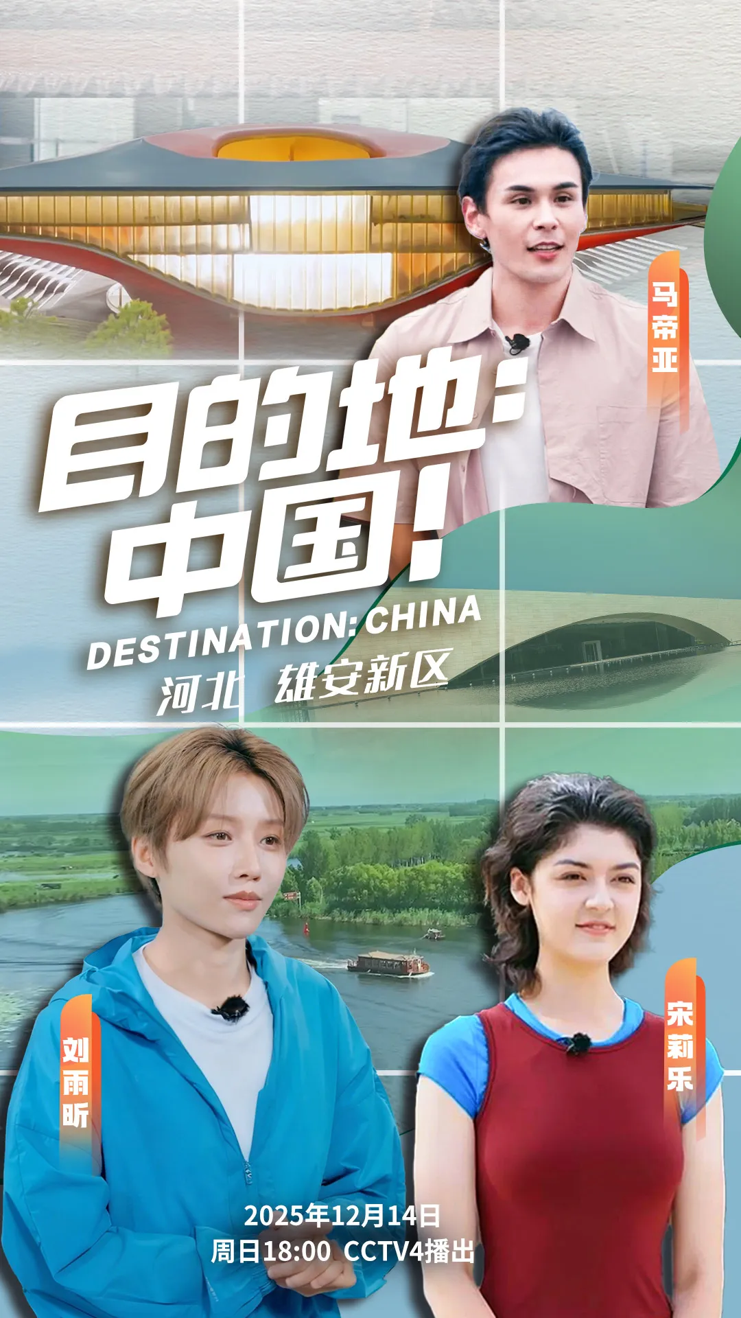 《目的地:中国!》再出发!12月14日18:00锁定CCTV-4,来自意大利与美国的两位免签探路官马帝亚、宋莉乐,携手飞行嘉宾刘雨昕,一同走进“未来之城”雄安新区。