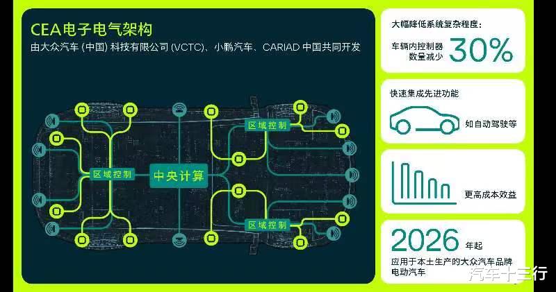 此次一汽-大众将基于大众汽车集团本土开发的CMP平台(Compact Main Platform)推出两款纯电动车型。并且这两款车型将搭载高性能的CEA电子电气架构(China Electronic Architecture)。CMP平台是由大众汽车(中国)科技有限公司(VCTC)开发,这是大众推出的专属中国市场的电动汽车平台CMP,该平台开发周期将比传统流程缩短30%,并实现40%的成本优化,支持纯电和插混车型。车型所搭载的CEA架构,同样也是由本土研发,可实现车内控制单元减少30%,并且实现数字服务的快速拓展、无缝集成高级自动驾驶辅助等先进功能,支持OTA升级。