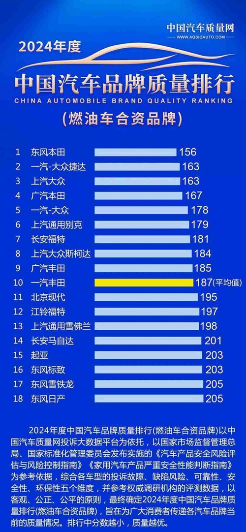一年一度的“3·15消费者权益日”又如约而至,这个特殊的日子就像一场大考,再次让汽车质量成为公众目光聚焦的热点。中国汽车质量网发布的2024年度燃油汽车品牌质量榜单新鲜出炉啦,这其中可是包含了满满的看点呢。此次一共有64家车企登上这个榜单,那可真是涵盖了自主品牌、合资品牌以及豪华品牌这三大阵营,就像一场汽车界的全明星大聚会。不过呀,在这64家车企里,有34家车企的质量分数没有达到平均值。