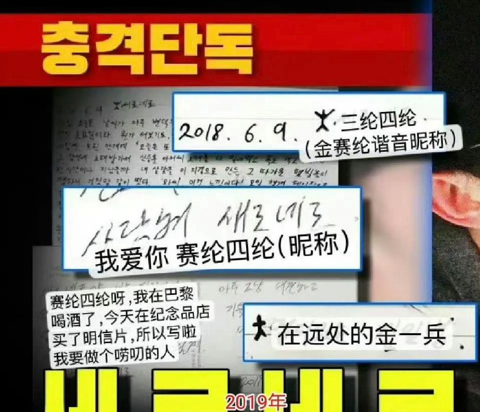 金秀贤在入伍期间,还给金赛纶写信说“我爱你,赛纶,来自远方的金一兵”。