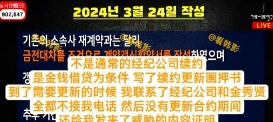 因为和金秀贤是恋人关系,合同报酬也都很模糊,甚至还要白干活,经常无偿为公司新人提供演技、视觉指导等帮助。