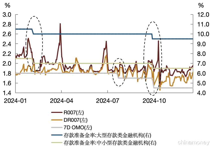 展望来看,笔者认为2025年货币政策仍会延续宽松,货币市场利率中枢或进一步下行,同时伴随货币政策框架的完善和优化,货币市场平稳性、货币市场利率与政策利率的联动性也会得到一定程度的加强。