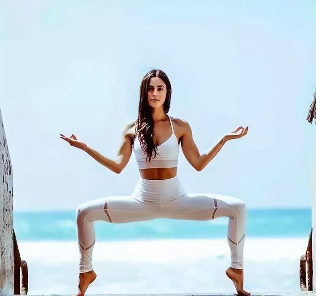 瑜伽女神式Utkata Konasana。这是一个帮助你在拉伸和调节下半身的同时驾驭宇宙力量的姿势。这个体式帮助我们连接到我们内在的女神,用这种强大的女性能量找到一个共同的空间。