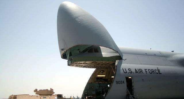 在装载货物时,C-5具备独特的双向装载设计:机头可抬起,尾部也能开门装载,与俄罗斯的安-124颇为相似。尽管装载能力不及安-124,但在军用运输机领域,C-5依然是名副其实的最大型机型之一。