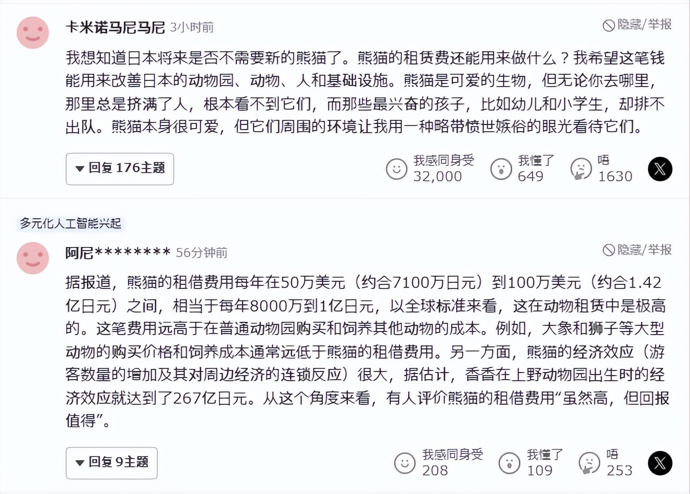 日本网友觉得:大熊猫很可爱,可是却失去了自由,她们希望它能在原本属于它的领土上生活;