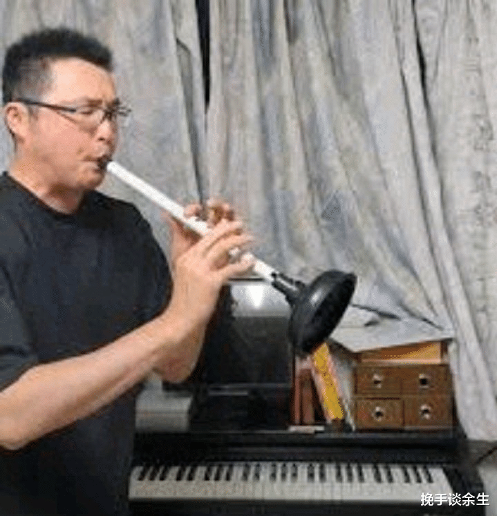 走近一看,却发现演奏者手里拿着的是一个马桶揣子。