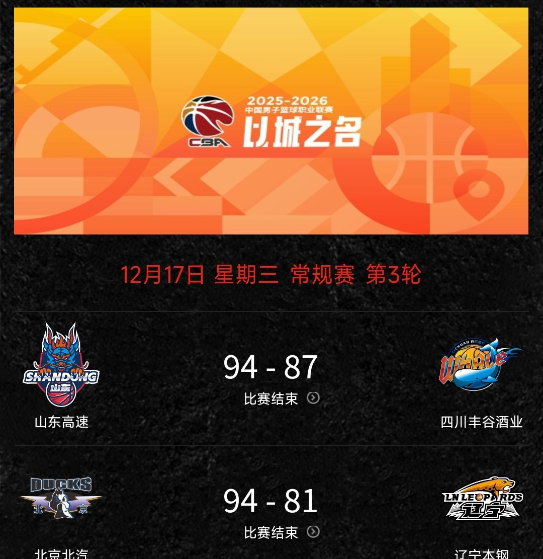 12月17日晚一共有两场比赛,山东男篮主场战胜四川男篮,本场比赛克里斯砍下29分,山东男篮三外援两人吃到违体,一人吃到技术犯规,四川男篮全华班打的非常不错。