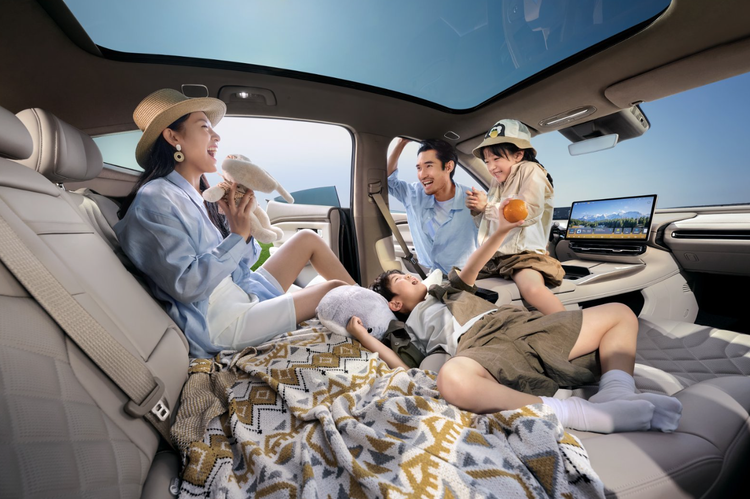 在超值之外,更让人惊喜的是它的“豪华”攻势。它做到了“入门即满配”:全系标配Nappa真皮座椅,前排座椅不仅带通风加热,更有10点按摩功能;后排“天王椅”还集成了脚蹬、小桌板的大扶手,让长途变成享受。再加上22扬声器的杜比全景声系统、电动遮阳帘和隐私玻璃,这些通常在更高价位车型上才需要选装的豪华舒适配置,它一次性全部给齐。