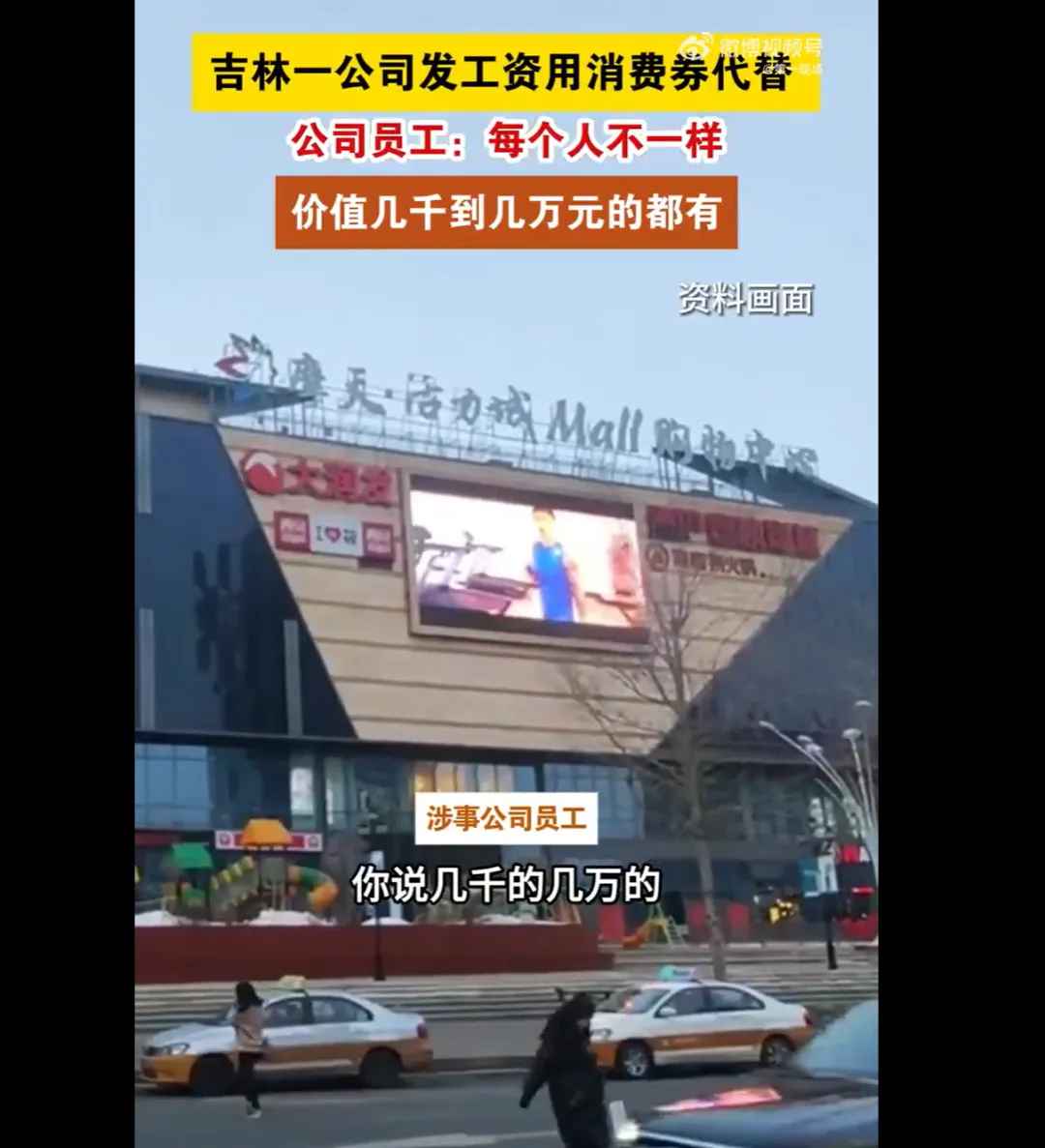 据深圳广电集团都市频道《第一现场》报道,记者打电话到该公司,工作人员称,有一部分是发消费券抵工资,每个人不一样,价值几千到几万元的都有,具体怎么使用还不清楚。该员工表示,领导级别越高,分的越多,“我们也没招”。