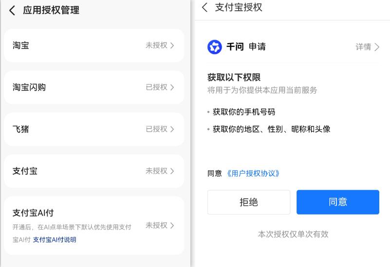 当你首次在千问App中使用购物功能时,系统会要求你: