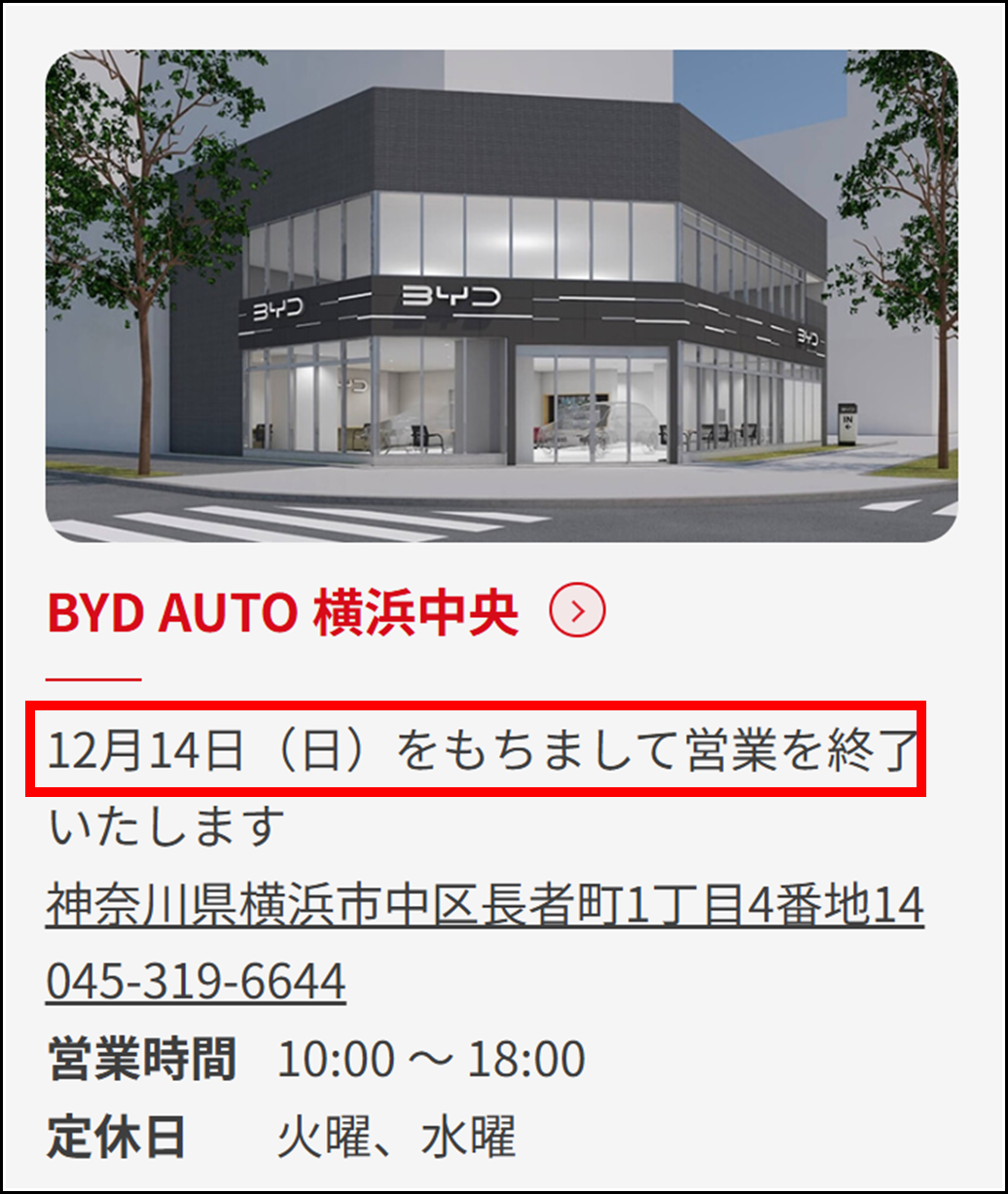 而且日本横滨中央店还不是第一家关闭的比亚迪日本经销店,之前有网友透露,日本群马一家比亚迪经销店也关闭了。