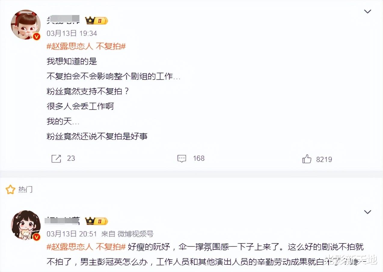 还有大V认为不复拍会影响整个剧组的工作,很多人会丢工作,不复拍肯定不是好事。