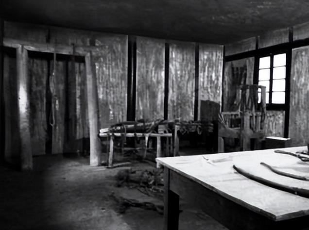 房间里湿冷潮湿,墙上挂满了锈迹斑斑的刑具,空气中弥漫着令人作呕的血腥味。