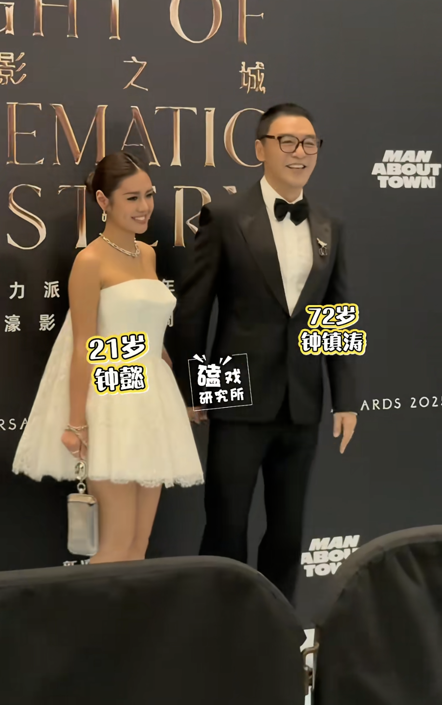 而51岁才生下这个女儿的钟镇涛白衬衫配黑西装,身材一如年轻时挺拔,脸看上去也没有太多岁月痕迹,与女儿站一块完全看不出来年龄。