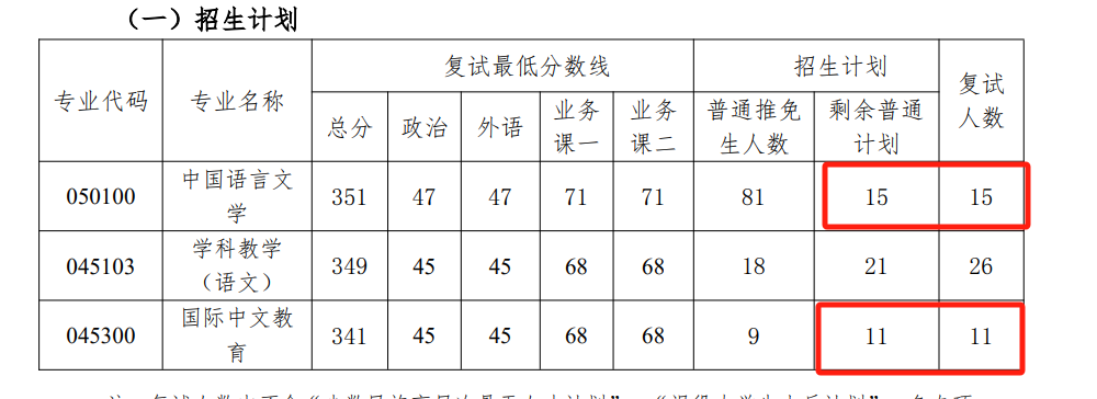 文学院050100中国语言文学、045300国际中文教育专业为等额复试