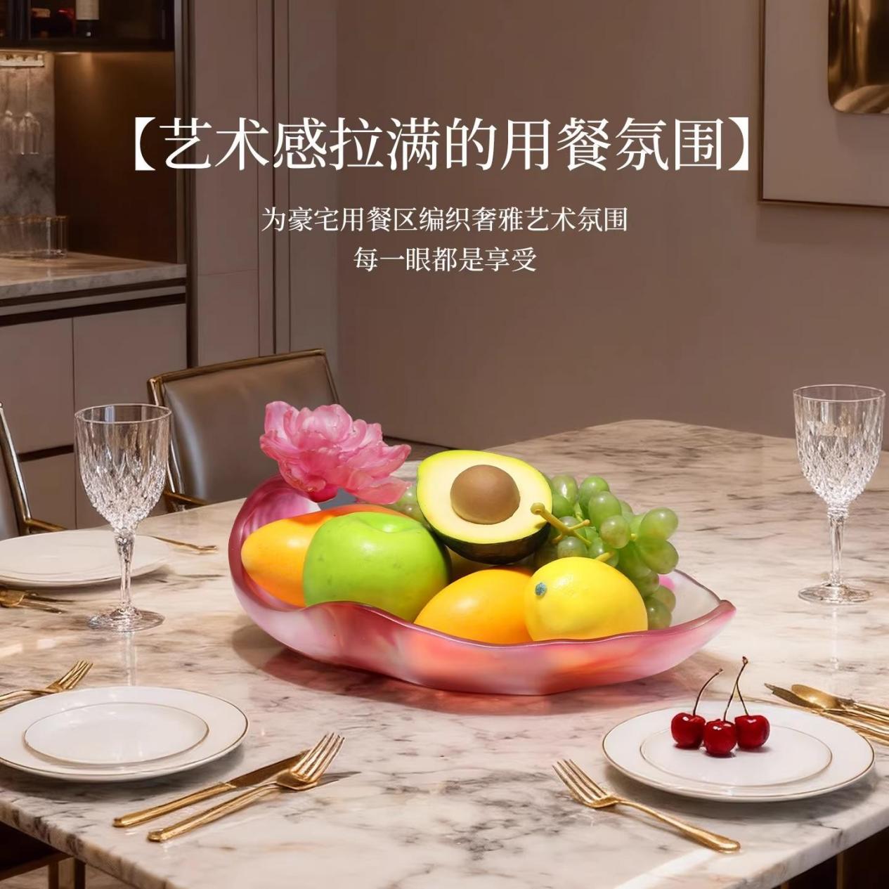 这件古法琉璃牡丹花果盘摆件,不仅是一件工艺品,更是提升家居美学的神器。将它放置在客厅的茶几上,立刻成为视觉焦点,为休闲时光增添几分雅致。在午后的阳光下,阳光透过琉璃折射出五彩光芒,与盘中新鲜水果相互交织,营造出温馨惬意的氛围 。