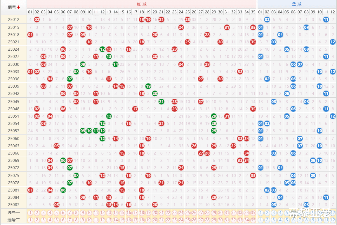 附大乐透和双色球重号走势数据: