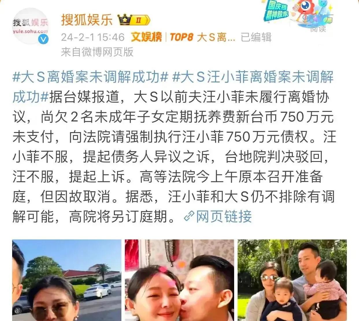 但大S和汪小菲之间的财务纠纷,已经不是他们两个人的事情了。