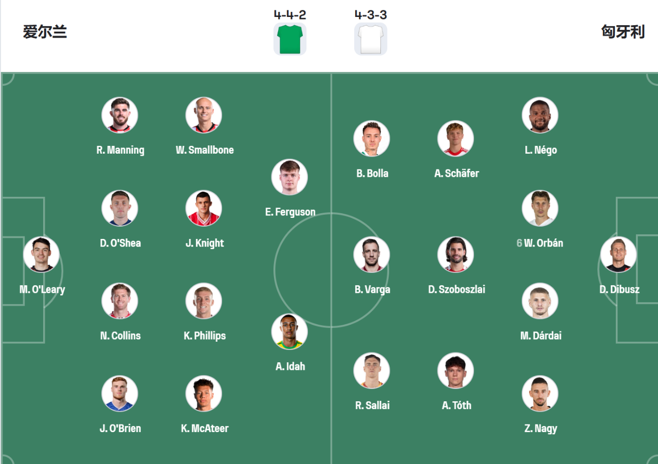 爱尔兰:爱尔兰此前在欧国联使用4-4-2站位传统的英式打法,表现不佳,进攻比较以来长传找高点弗格森,进攻方式单一,防守端密集防守质量严重不足遭遇希腊和英格兰大比分双杀,此役面对打法相当的匈牙利,爱尔兰在战术层面也没有明显的优势,能否更好的执行战术还是取决于部分明星球员的发挥。