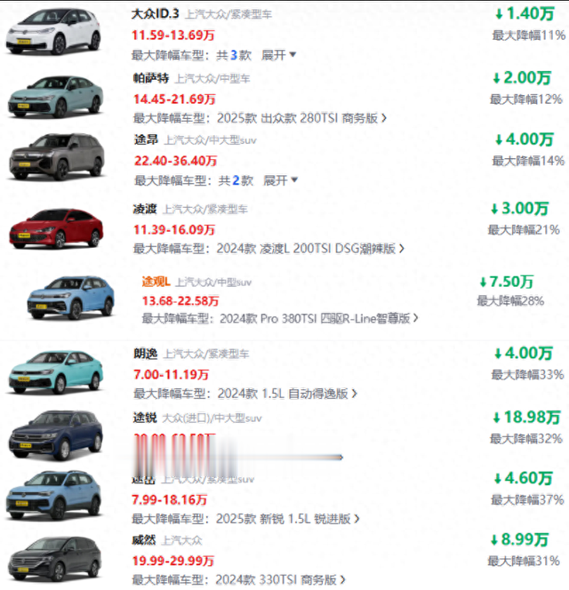 虽然整个汽车市场非常内卷,但是没有哪个品牌想躺平,大众也不想躺平!下面给大家看一下,上汽大众下的9款车型,在当下优惠表现以及市场行情情况!