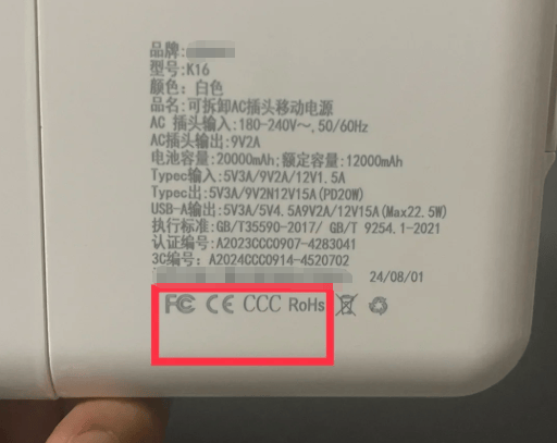大家在选购之前一定要留意充电宝的机身上标识是否齐全,否则出行的时候是不能携带上飞机的。一款符合规定的充电宝应该在机身上具备产品名称、电池容量、额定输入/输出功率、制造商信息、安全认证标识等信息,如果充电宝没有这些标识信息的呈现,大概率是一款不合格的充电宝,不建议用户购买。