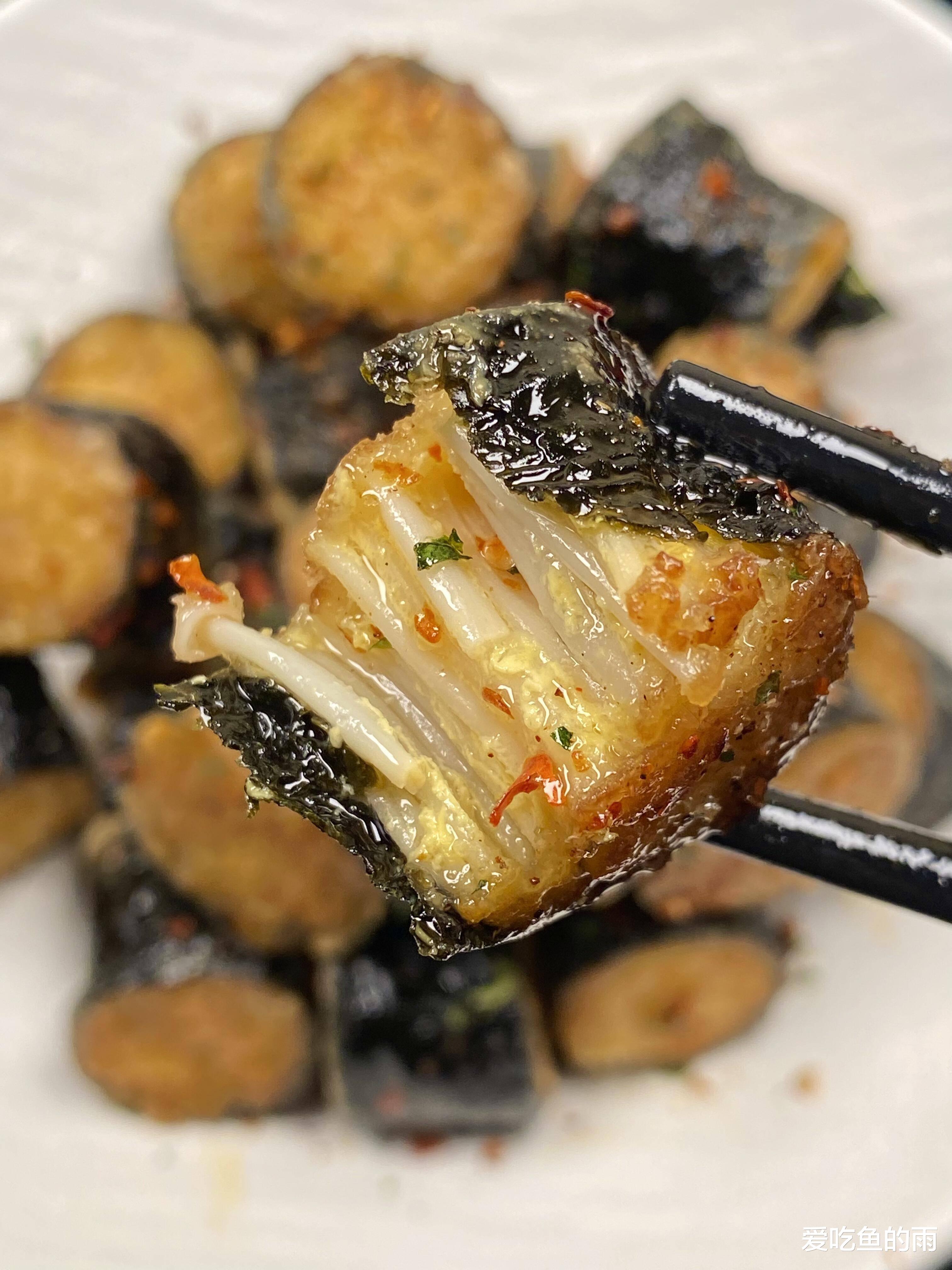 如果要评选“让不爱吃菜的小朋友乖乖张嘴”的神器,这道海苔金针菇卷绝对能C位出道!它就像一根根穿着黑袍的“鲜味魔法棒”,外表其貌不扬甚至有点黑乎乎,但只要牙齿轻轻咬开那层酥脆的海苔,里面滚烫多汁的金针菇瞬间会在舌尖炸裂,鲜甜的菌汁混着焦香的海苔味,那种“爆浆”的口感简直让人欲罢不能。这可是我当年为了拯救只爱吃肉的小侄子,在厨房瞎琢磨出来的“黑暗料理”逆袭记,没想到一战成名,成了我家野餐和便当的保留节目。