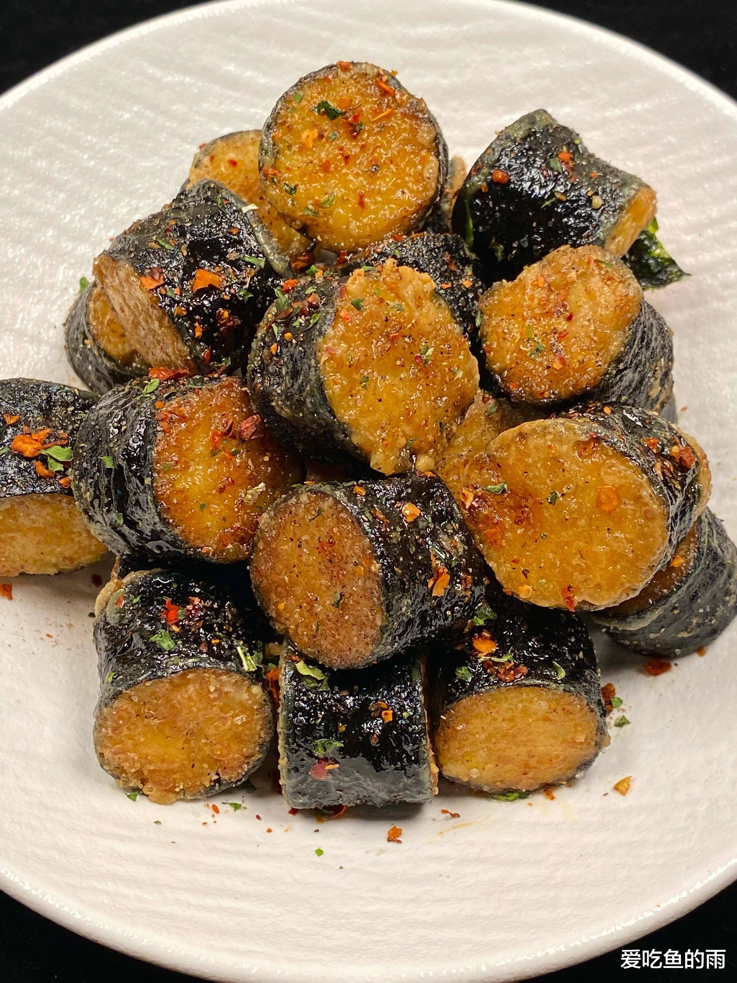 煎制是赋予它灵魂的一步。平底锅刷薄薄一层油,小火慢煎。千万别用大火,海苔很容易糊,糊了就发苦。一面煎到海苔变绿、变脆,翻面继续煎,直到两面都呈现出诱人的焦褐色,闻到那种类似烧烤的焦香味就可以出锅了。如果想更丰富,可以提前调个照烧汁或者蜂蜜水刷在上面,那就是进阶版的“照烧海苔卷”了。