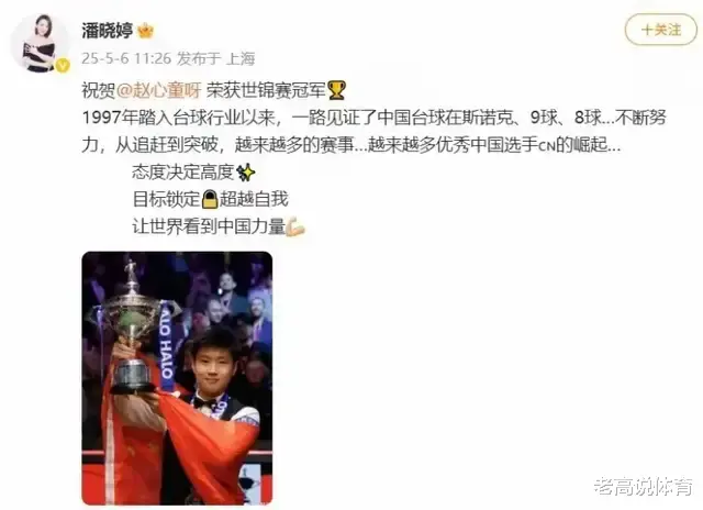 潘晓婷祝贺赵心童夺冠