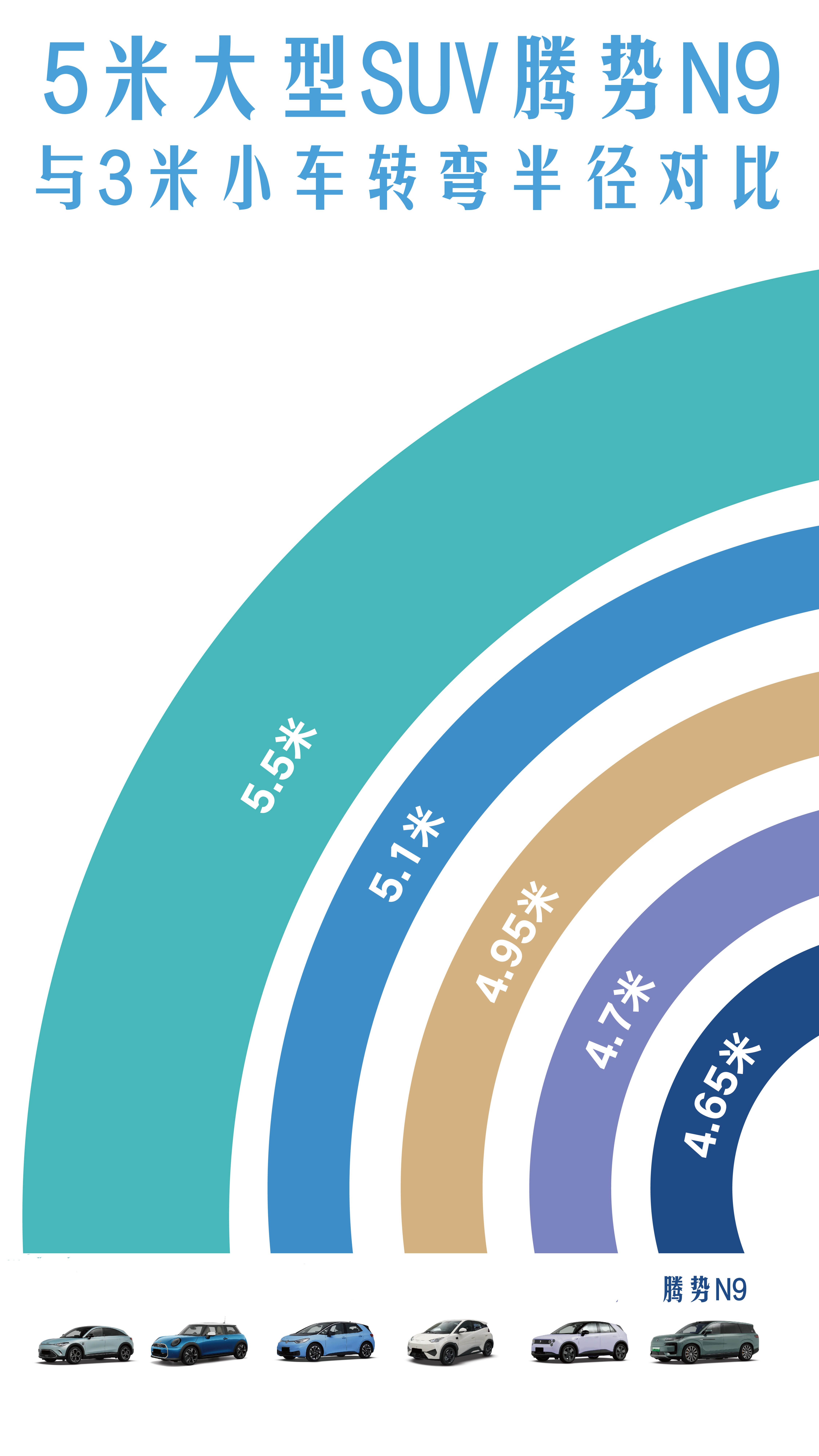众所周知,大型 SUV 虽然空间大、气场足,但转弯半径大是个让人头疼的问题,出地库、窄路掉头特别麻烦,还容易刮蹭。不过腾势 N9 却打破了这种固有印象。它车长超 5 米,转弯半径居然只有 4.65 米,比不少 A00 级小车都小。和同级豪华 SUV 相比,优势更是明显,直接把转弯半径这个大难题解决了。这背后靠的是它搭载的易三方技术,三电机独立驱动和后轮双电机独立转向架构协同工作,让大车实现了 “小车感”。能做到这点真的太不容易,既提升了驾驶的灵活性,又降低了驾驶难度,对新手小白特别友好。没有盲目堆砌配置,而是切实解决消费者的痛点,这种从用户角度出发的创新精神,值得点赞。期待腾势后续还能带来更多让人惊喜的技术和产品,也希望其他车企多卷起来。