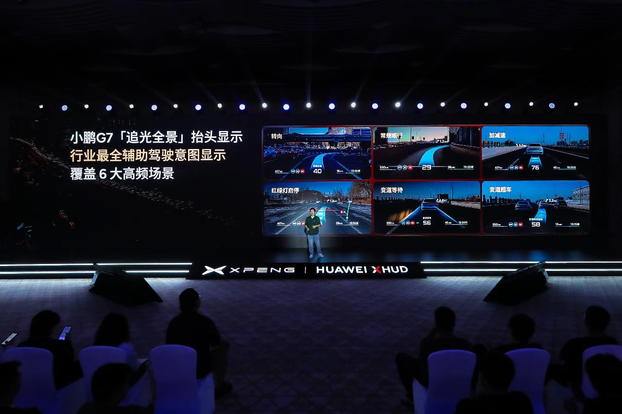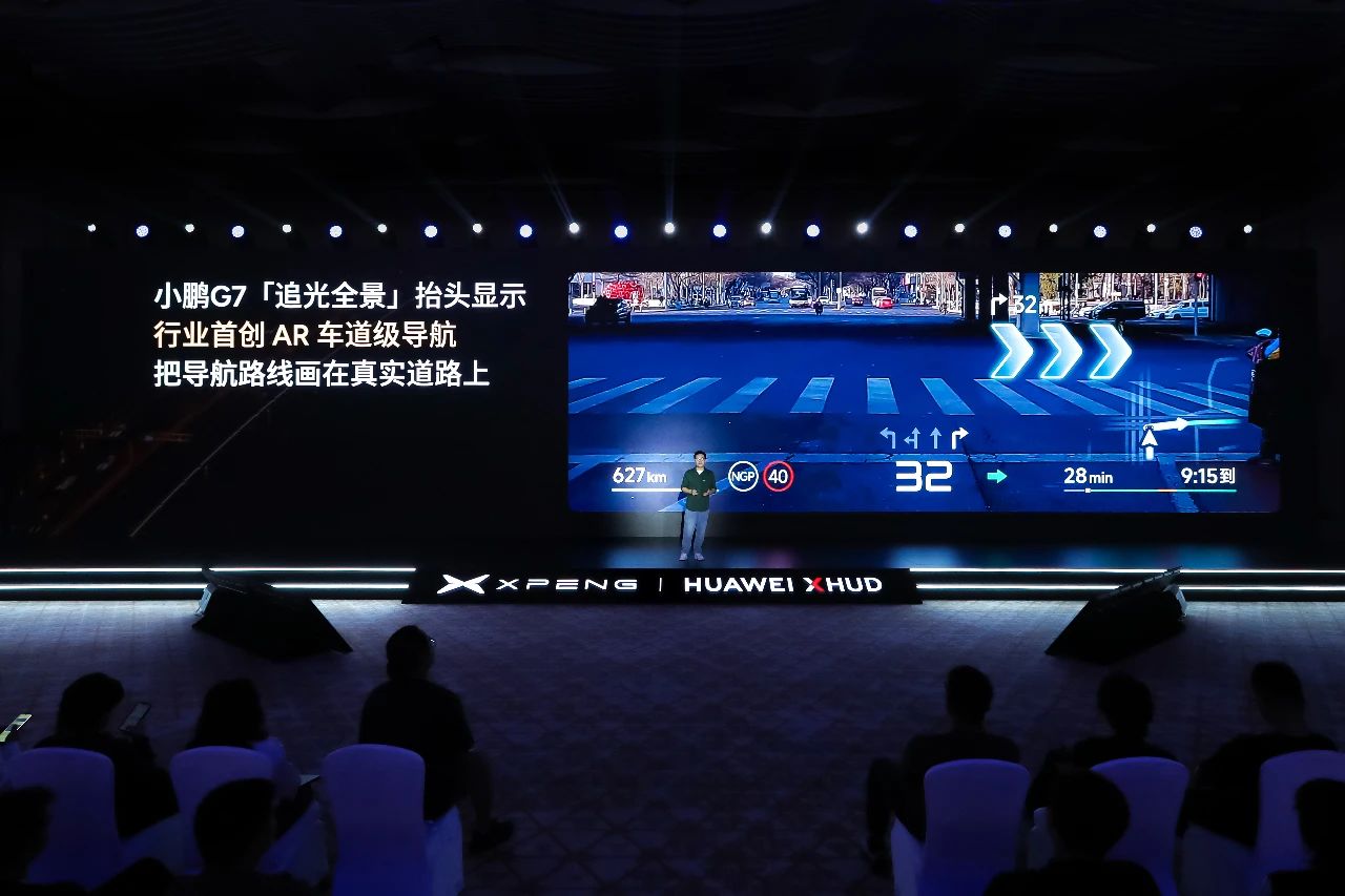 小鹏汽车联合华为智能汽车解决方案发布世界最好的车载AR-HUD——「追光全景」抬头显示,这是全球首个真正融入AI智驾的HUD解决方案,也是视觉效果最好的AR-HUD。