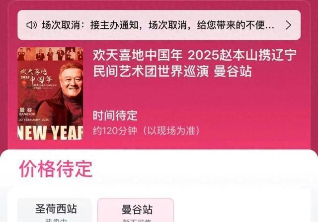 然而,计划中的曼谷站演出却遭遇挫折。近期缅甸诈骗事件频发,有演员在泰缅边境失联,这让很多人对泰国的安全产生怀疑。1 月 11 日,“欢天喜地中国年” 2025 赵本山携辽宁民间艺术团世界巡演曼谷站官宣延期。