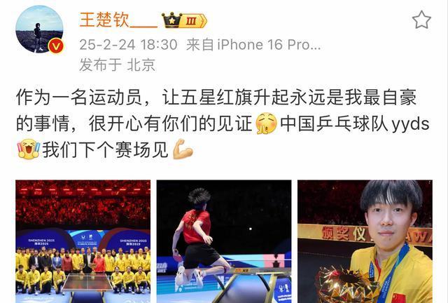 接着就说下一个赛场见啦,能看出来大头拿到这个冠军可开心啦。毕竟这冠军拿得超简单,没什么曲折过程,就是轻轻松松 4 - 0 打败梁靖崑夺的冠。在经历了去年奥运 32 强的低谷期后,大头心态上的进步那是一眼就能看出来。大赛上再也不犯怂啦,球技和状态都在线的大头就是这么厉害。
