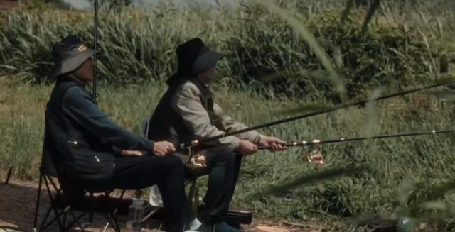 正当两人在谈论最近钓鱼的收获时,突然发现鱼竿出现了晃动,好像有大鱼上钩了。