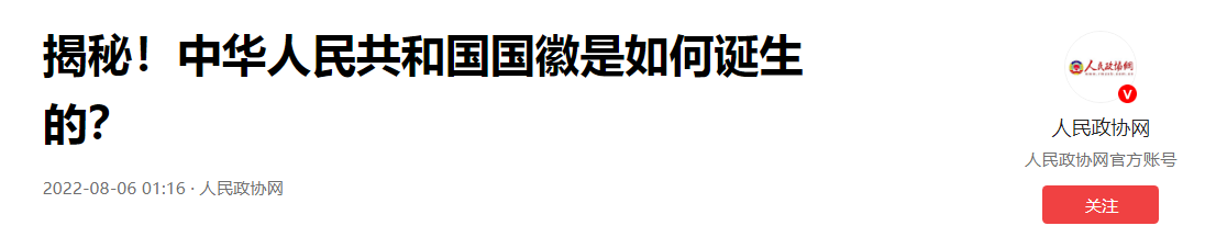 人民政协网:2022-08-06:揭秘!中华人民共和国国徽是如何诞生的?