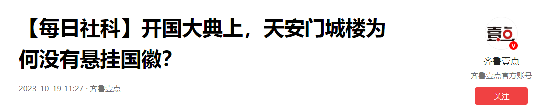 齐鲁壹点:2023-10-19:【每日社科】开国大典上,天安门城楼为何没有悬挂国徽?