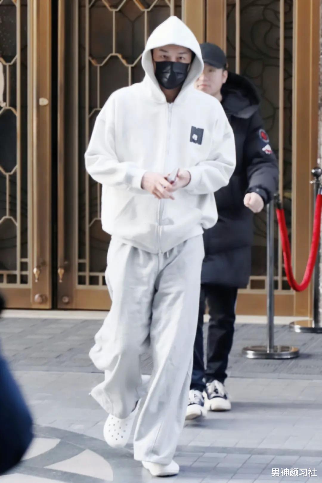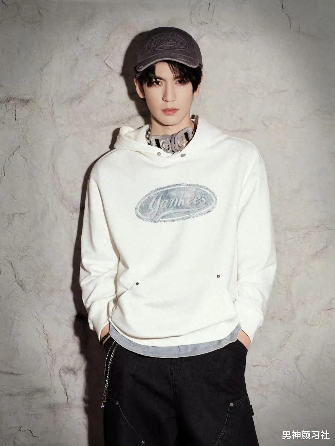 白色卫衣完全可以拿来玩all white的穿搭,像他这样用花白灰色卫衣搭配休闲裤,清爽帅气,少年感满满!而且这件衣服真的特别便宜,200不到就能到手,真的好接地气!