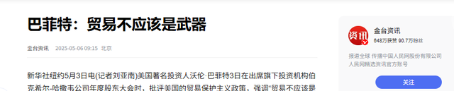 金台资讯-2025-05-06-《巴菲特:贸易不应该是武器》