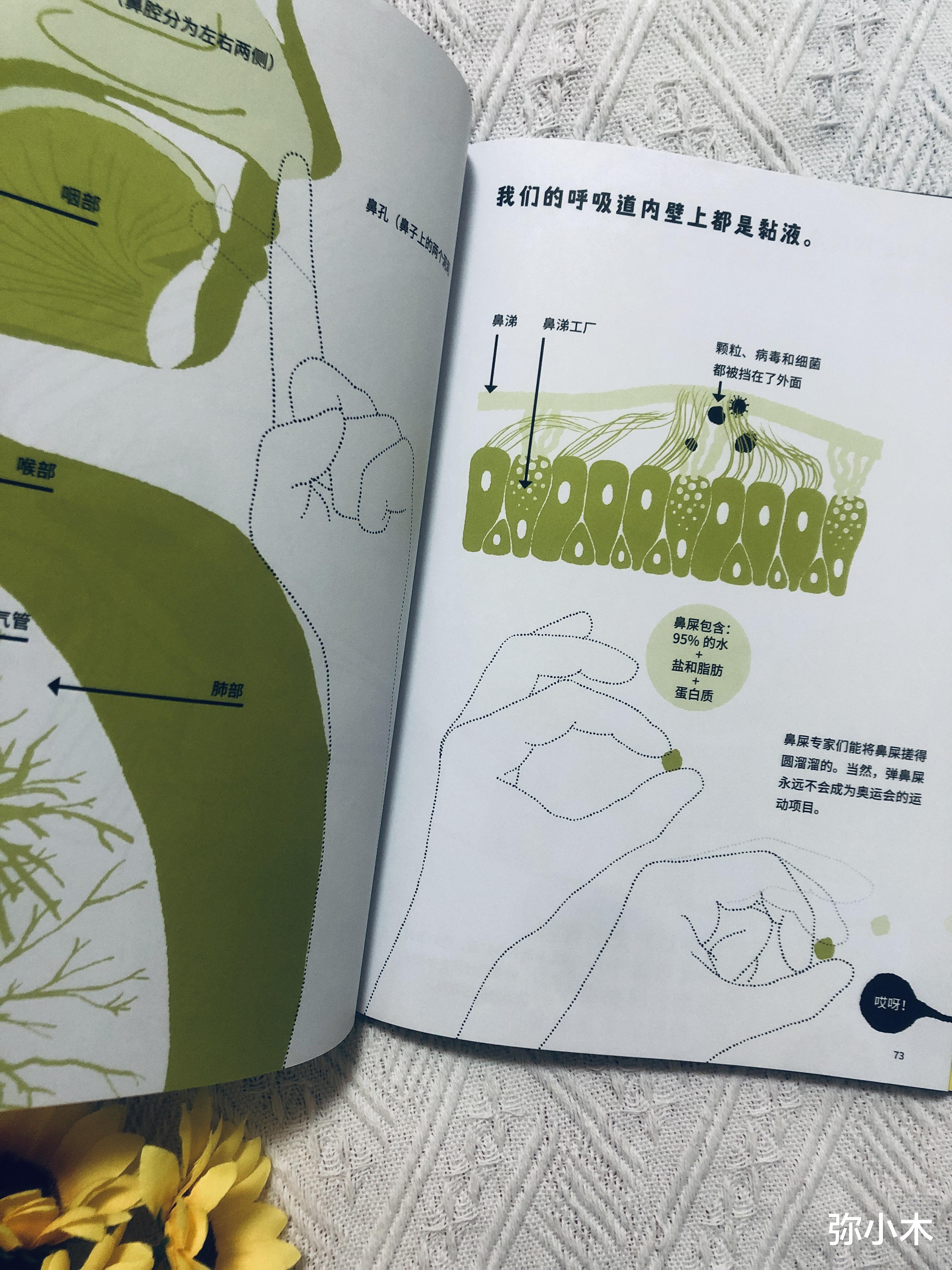 书中引人发笑的,不止贝尔塔·帕拉莫的介绍,还有书中的笑点。比如在分享“鼻涕”这件事时,贝尔塔·帕拉莫同时分享了鼻屎专家们会做的一件事:把鼻屎搓得圆溜溜的,然后弹掉。