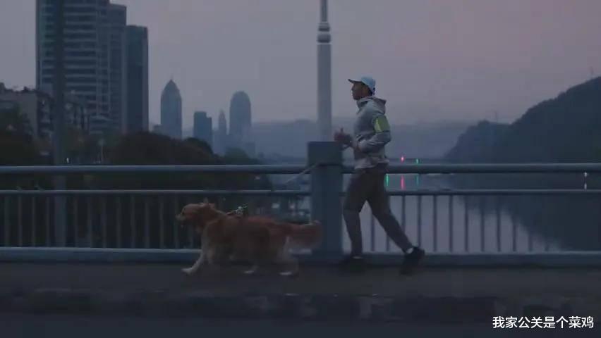 路人和狗狗从城市跑到了田野