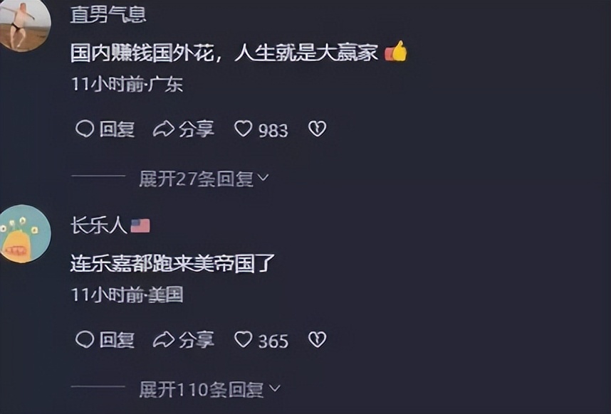 有的网友还义正言辞的的指出:乐嘉是国内捞金国外花,人生不要太得意。