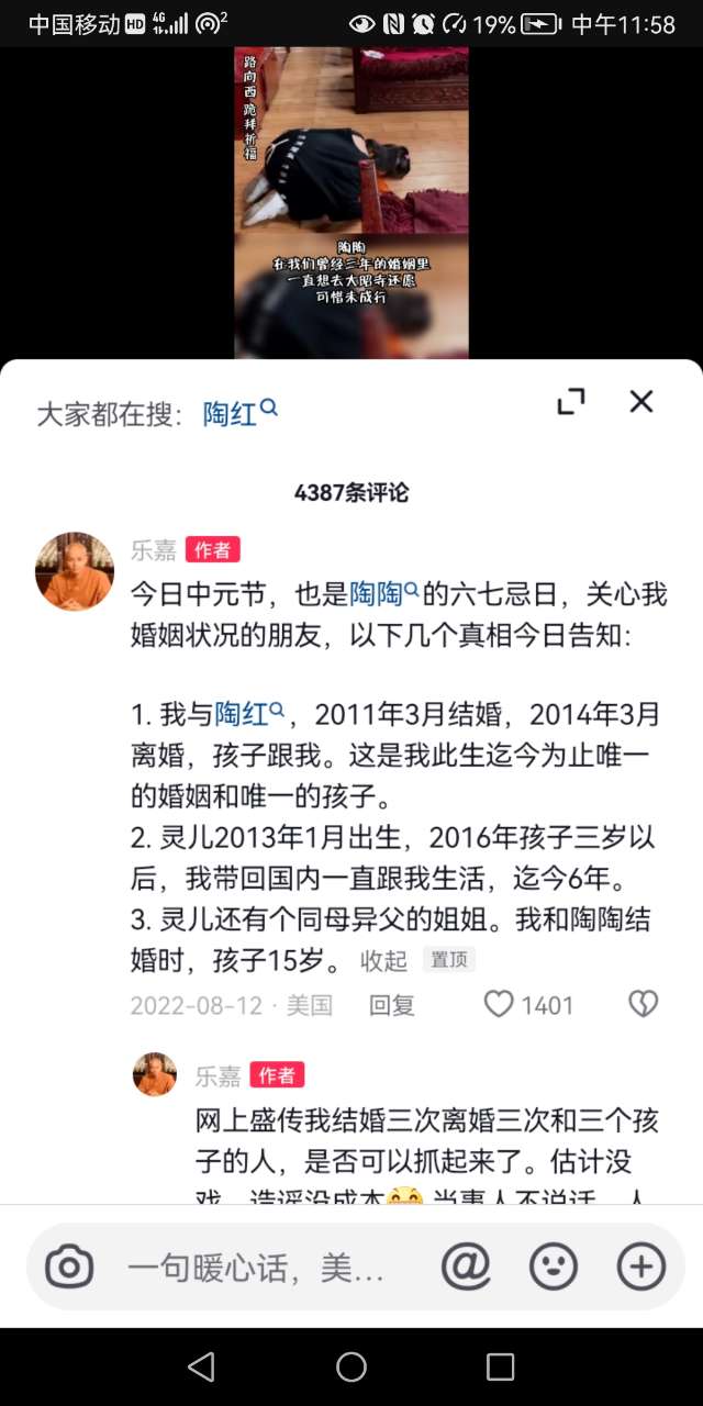 同时也回应了自己三段婚姻的的谣传,明确说明此生至今只有一段婚姻和一个孩子灵儿。