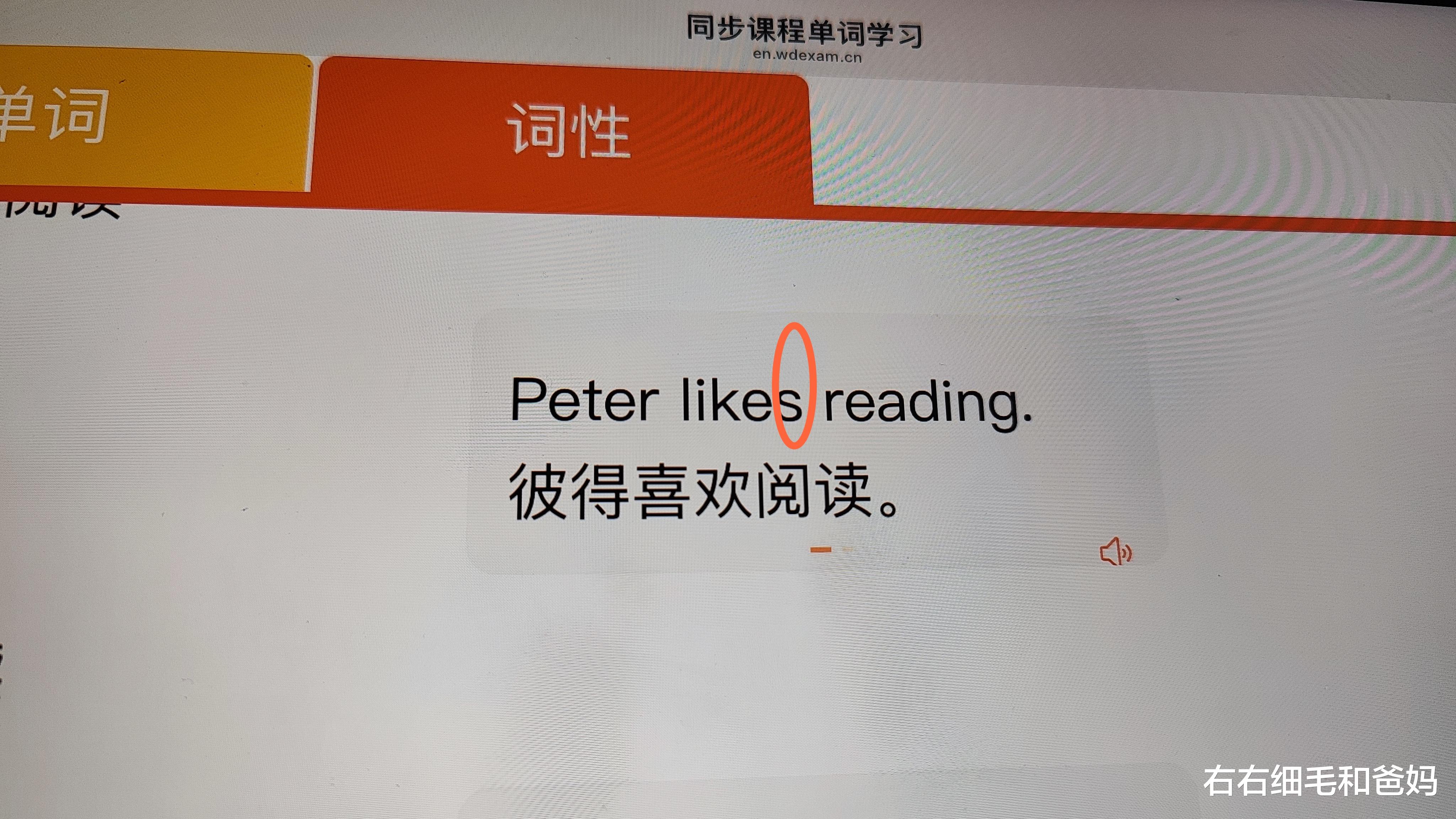 动词遇到“第三人称单数”需要“加S”,但是还是原来的动词的意思。二年级的双胞胎每次早读英语绘本,遇到“加上S”的动词,都要问一遍我这是什么词。